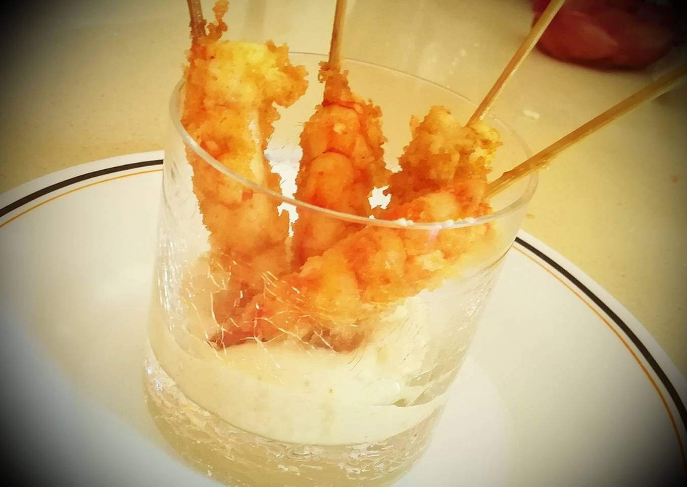 Gambas empanadas y mayonesa al curry