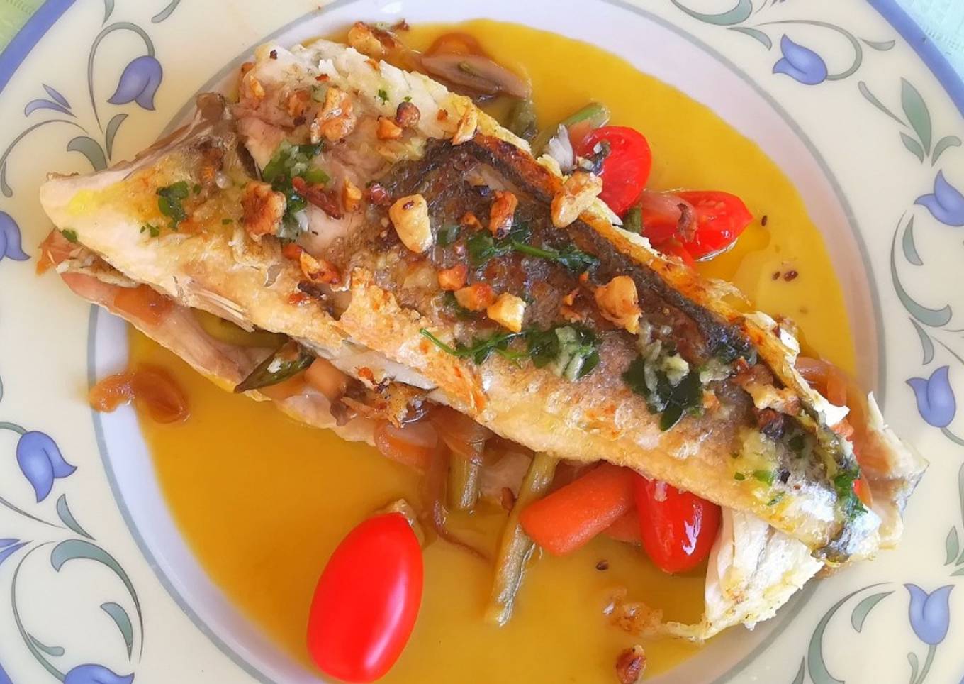 Hello everybody, hope you're having an amazing day today. Today, I'm gonna show you how to prepare a special dish, Lubina rellena de verduras sobre crema de espárragos. It is one of my favorites. This time, I'm gonna make it a little bit tasty. This will be really delicious.