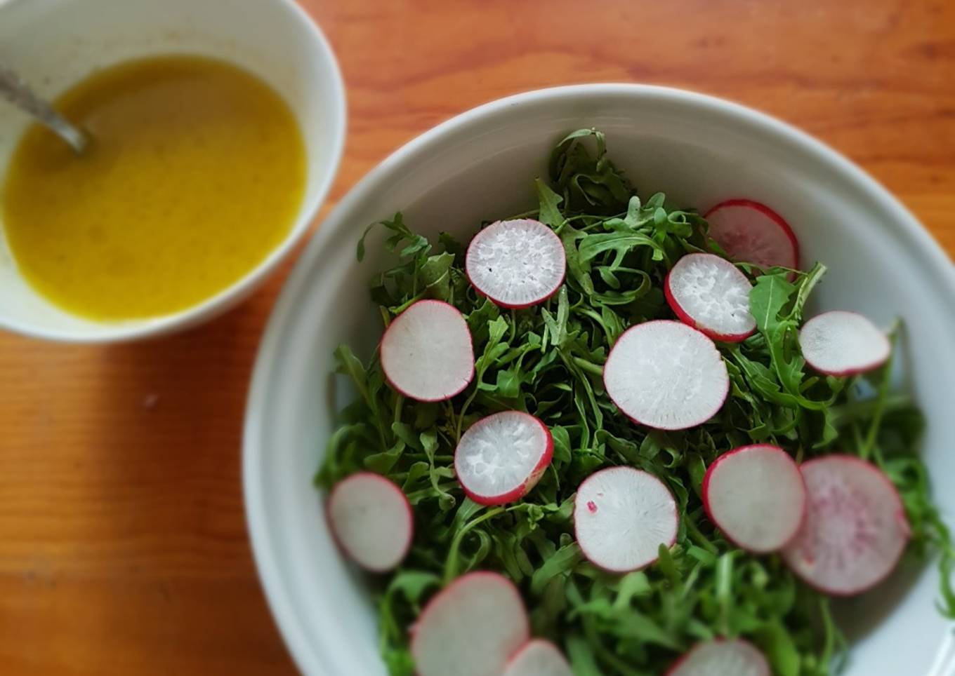 El sabor fuerte de la arúgula y los rábanos combina a la perfección con el sabor ácido del limón y el aceite de oliva extra virgen.