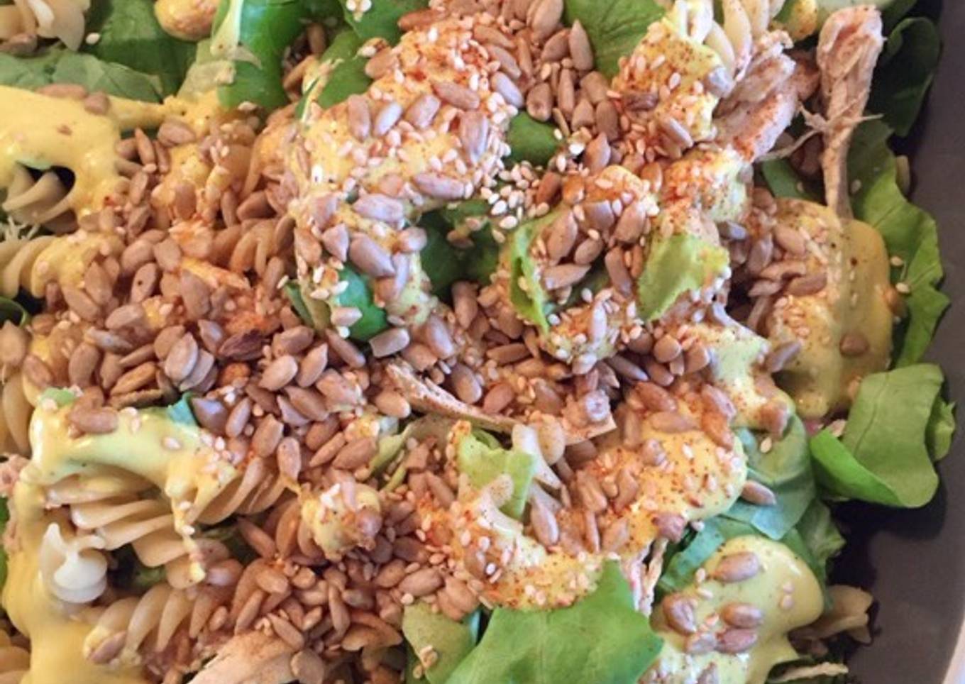 - Terminar la ensalada con semillas de girasol, ajonjolí y paprika.