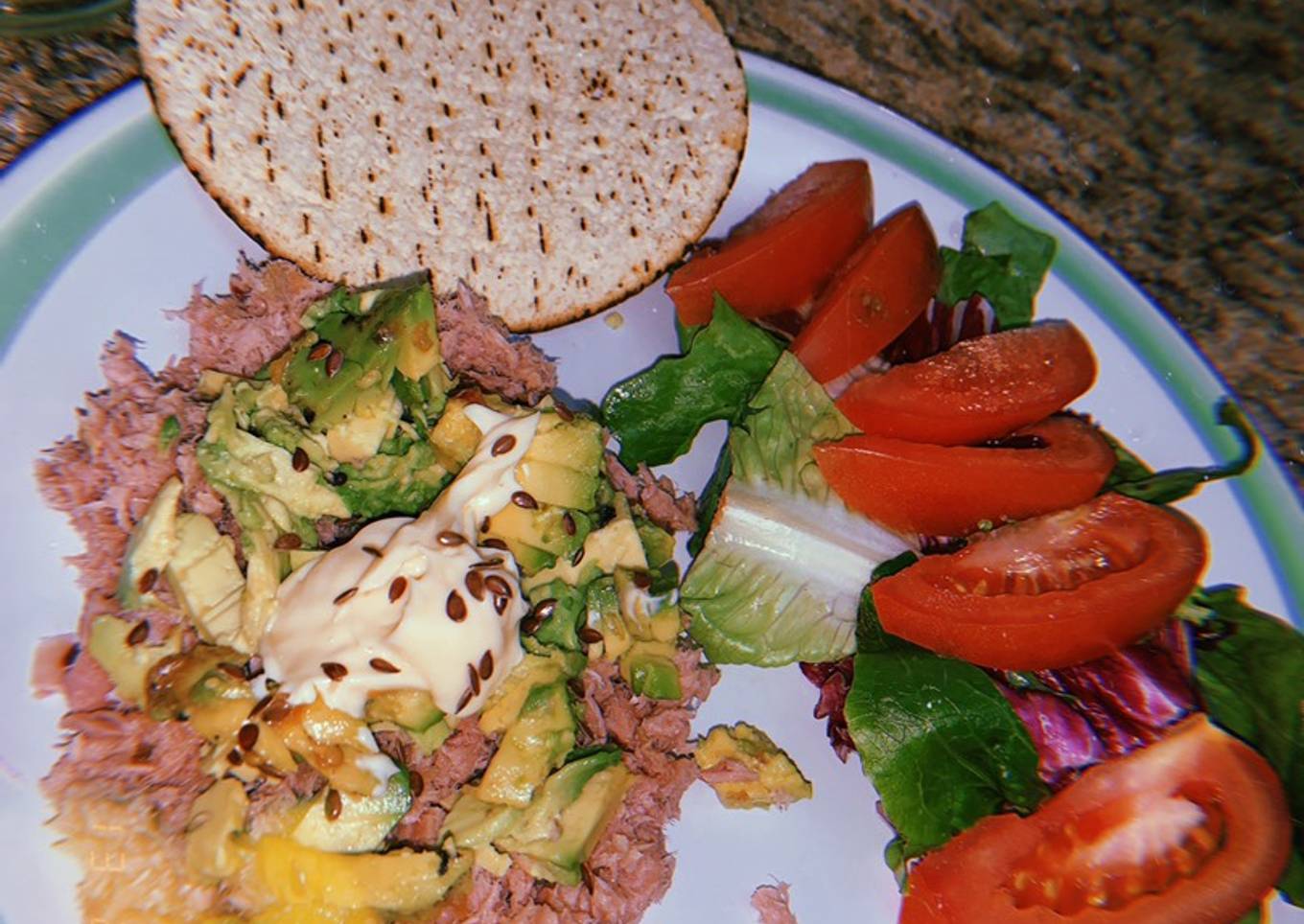 - Agrega el aguacate, la mayonesa light y la linaza al atún.