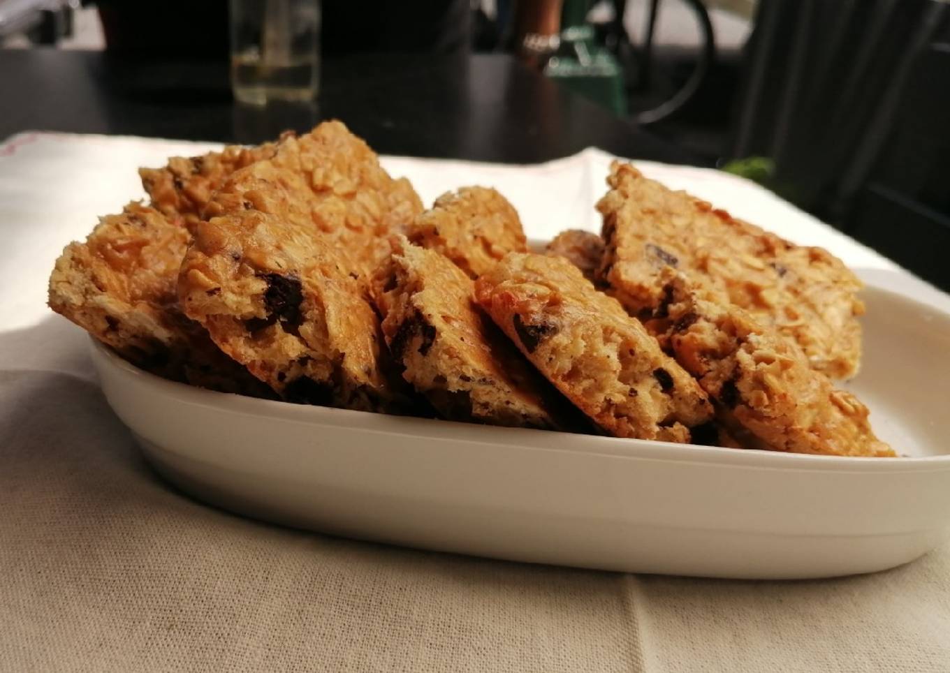 - Sacar del horno, desmoldar y cortar con un cuchillo la placa de avena en el tamaño que prefieras tus galletas, dejar enfriar y estarán listas para comer.