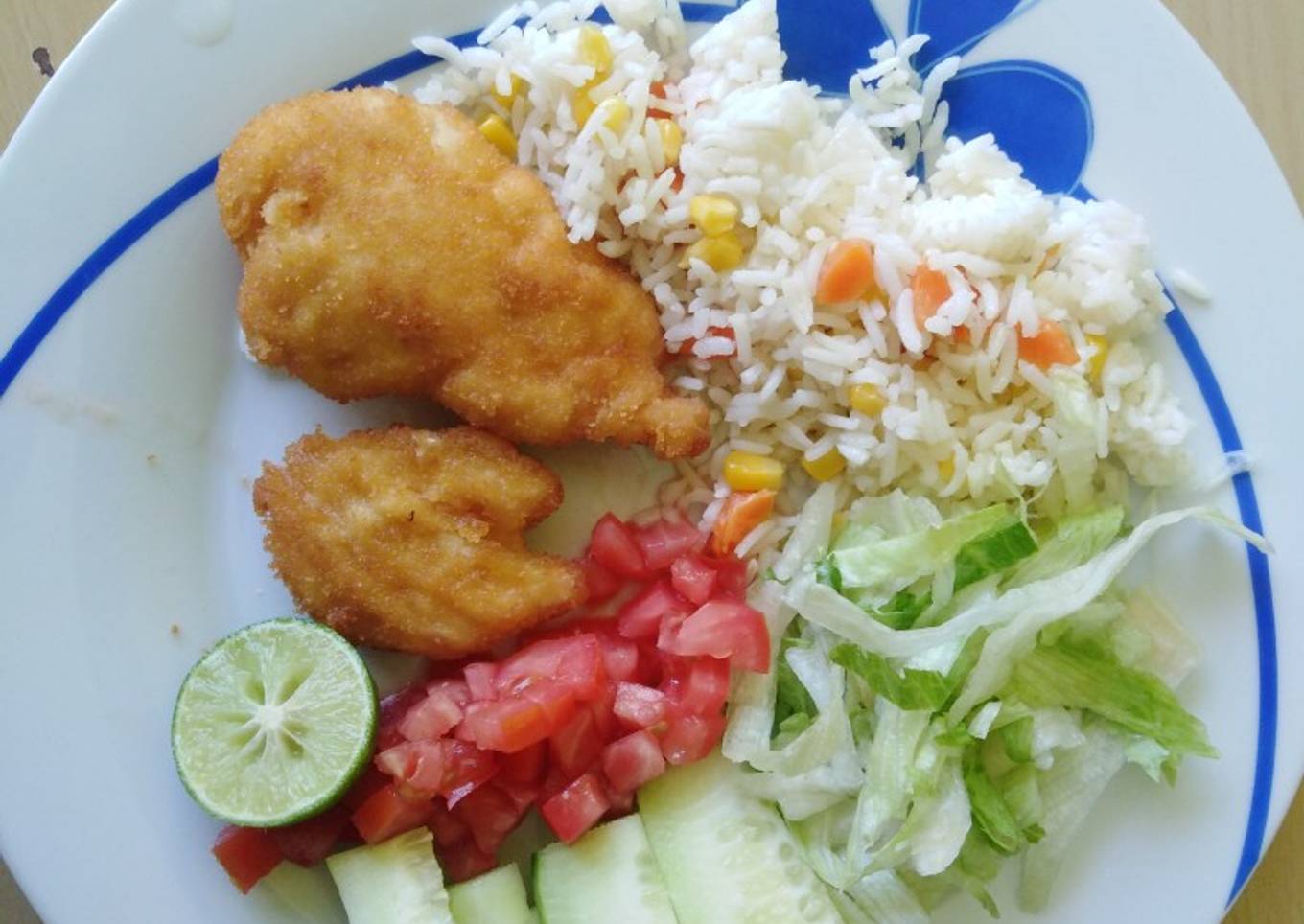 - Se sirve el pollo, el arroz y se adorna con la lechuga, el tomate, el pepino y el limón. Al gusto le pueden poner un aderezo. Que la disfruten.