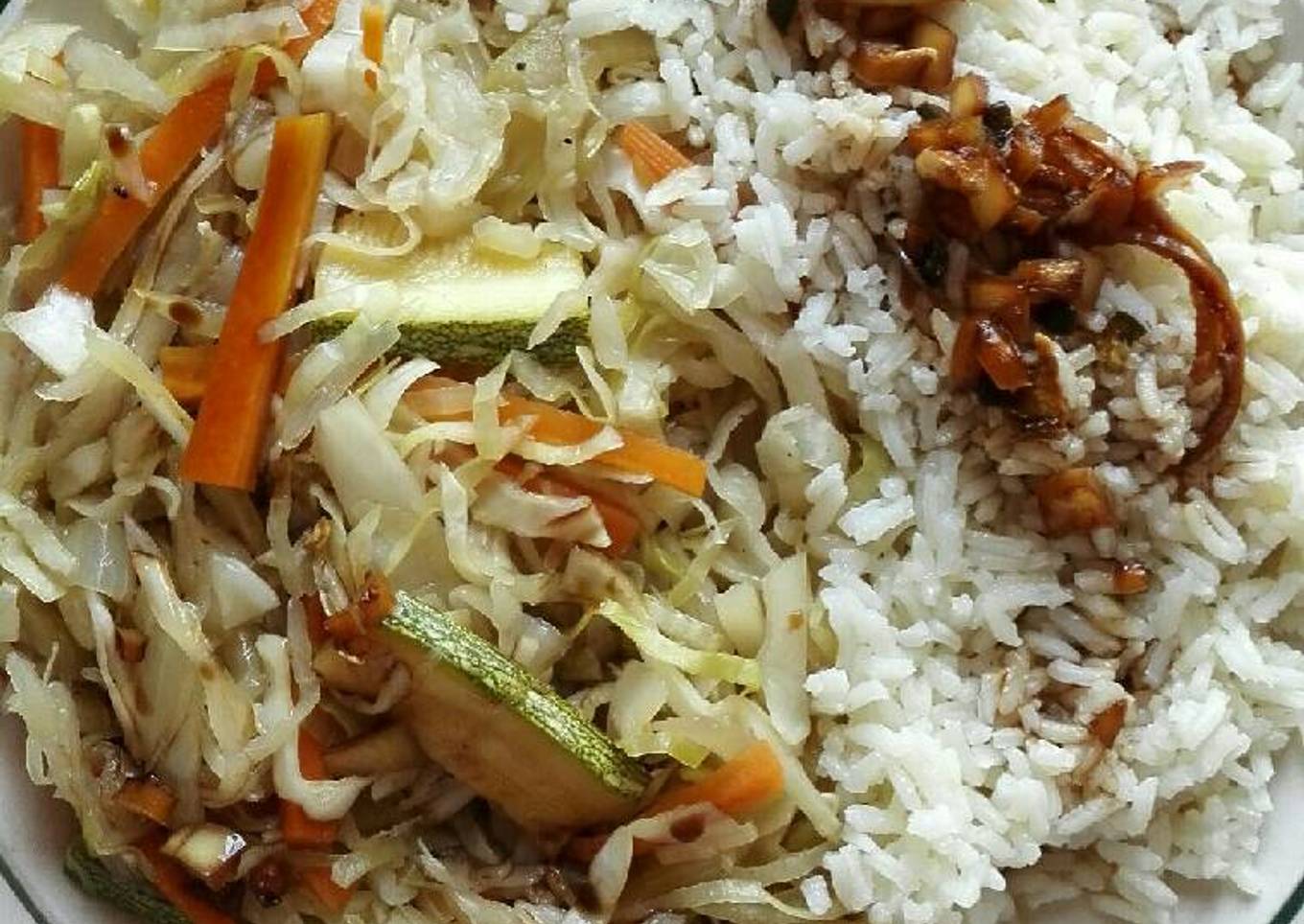 - En una sartén suficientemente grande pon la cebolla, ajo y apio, junto con un poco de repollo. Revuelve un poco y tapa, y así se va agregando el repollo y la zanahoria, al mismo tiempo sazonando. Por último la calabaza (ya que esta se cuece muy rápido), se deja reposar un momento y listo 👌.